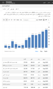 دادههای اقتصادی نیمه نخست سال ۲۰۲۵ نیز روند صعودی تورم را تایید میکند. تورم نقطهبهنقطه کل از سپتامبر تا اوت ۲۰۲۵ از ۳۱.۶ درصد به حدود ۴۴ درصد رسیده و CPI کل نیز از ۳۶۰.۲۰ در ژوئن به ۳۷۰.۵۰ در اوت افزایش یافته است که معادل رشد ۲.۹ درصدی است. CPI بدون احتساب مواد غذایی و انرژی در همین بازه ۱.۲ درصد رشد کرده و گروه مواد غذایی ۲.۸ درصد افزایش قیمت داشته است. این دادهها نشان میدهد فشار تورمی عمدتاً در گروه خوراکیها محسوس بوده و سایر گروهها نیز افزایش قیمت را تجربه کردهاند.