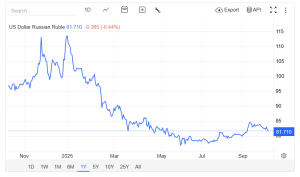 در ۲۰۲۴-۲۰۲۵، وضعیت پیچیدهتر شد. کسری بودجه در نیمه اول ۲۰۲۵ به ۱.۷ درصد GDP رسید، که نزدیک به ۱.۹ درصد ادعایی است و عمدتاً به دلیل هزینههای بالای جنگ (دفاع ملی ۶.۳ درصد GDP). تورم به بالای ۸ درصد (۸.۱ درصد در آگوست ۲۰۲۵) رسید و پیشبینی پایان کوارتر ۷.۲ درصد است. نرخ بهره برای مهار تورم افزایش یافت و در سپتامبر ۲۰۲۵ به ۱۷ درصد رسید، که با ادعای ۱۶ درصد نزدیک است. ارزش روبل در نیمه اول ۲۰۲۵ به بالای ۹۰ روبل (تا ۸۵-۱۰۰) رفت اما با مداخلات ارزی و فروش نفت تخفیفی تثبیت شد و اکنون حدود ۸۱.۷۶ روبل است. رشد GDP در ۲۰۲۴ حدود ۴ درصد و در ۲۰۲۵ حدود ۱-۲ درصد پیشبینی میشود. نظام ارزی شناور با مداخلات گزینشی حفظ شده و اقتصاد رشد مثبت را نگه داشته است.