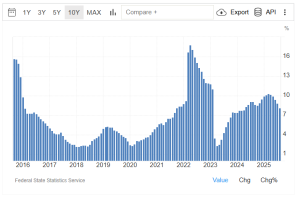 ذخایر ارزی روسیه نیز انعطافپذیری نشان میدهد، با حدود ۶۰۰ میلیارد دلار در ۲۰۲۴-۲۰۲۵، که شامل ذخایر طلا و ارز خارجی است. در مورد تورم، برخی منتقدان نرخ واقعی را دو رقمی میدانند، اما دادههای رسمی نشاندهنده کاهش به زیر ۱۰ درصد است، با پیشبینی بلندمدت ۴.۷ درصد در ۲۰۲۶.