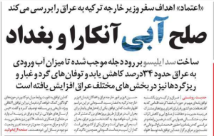 در ادامه این روزنامه نوشته است که بغداد و آنکارا روز یکشنبه توافق‌نامه‌ای مهم در حوزه آب امضا کردند؛ توافقی که به گفته مقامات دو کشور، قرار است زمینه‌ساز پروژه‌های مشترک برای مدیریت منابع آبی و مقابله با اثرات خشکسالی باشد.