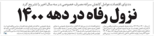 کاهش این شاخص در کنار رشد اقتصادی منفی ۰.۱ درصد با نفت و منفی ۰.۴ درصد بدون نفت نشان میدهد که مصرف واقعی خانوار کاهش یافته و رفاه عمومی پایین آمده است.