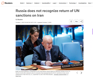 از اول اکتبر، ریاست دورهای شورای امنیت به روسیه رسیده است؛ همزمان با هشتادمین سالگرد تأسیس سازمان ملل. نماینده دائم روسیه، واسیلی نبنزیا، اعلام کرده که موضوع ایران در دستور کار رسمی جلسات این ماه شورا قرار نخواهد گرفت. این موضوع نشان میدهد روند پیگیری اسنپبک فعلاً در سطح سیاسی متوقف شده است. در همین زمان، جنبش عدم تعهد با ۱۲۰ عضو در بیانیهای بر لزوم پایان قطعی مفاد قطعنامه ۲۲۳۱ در تاریخ ۲۶ مهر تأکید کرده است. چنین مواضعی میتواند در عمل باعث تعویق یا تضعیف اجرای اسنپبک در دوره ریاست روسیه شود.