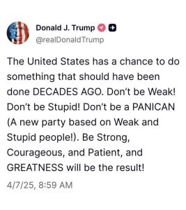 گروه راستی آزمایی پایگاه خبری -تحلیلی رواج ۲۴:برخی کانالهای تلگرامی مدعی شدهاند : “پست عجیب ترامپ که دقایقی پیش مجددا ریپستش کرد: آمریکا الان این شانس رو داره کاری رو بکنه که باید دههها پیش انجام میداد! ضعیف نباشید! احمق نباشید! دچار وحشت نشید! قوی باشید، شجاع باشید و صبر داشته باشید؛آخرش نتیجهاش عظمت خواهد بود!”